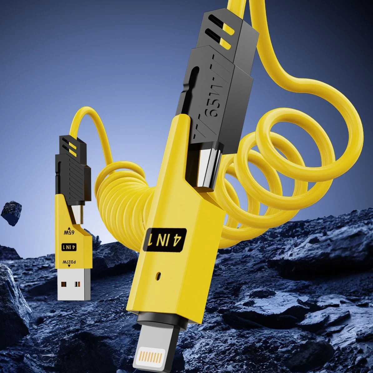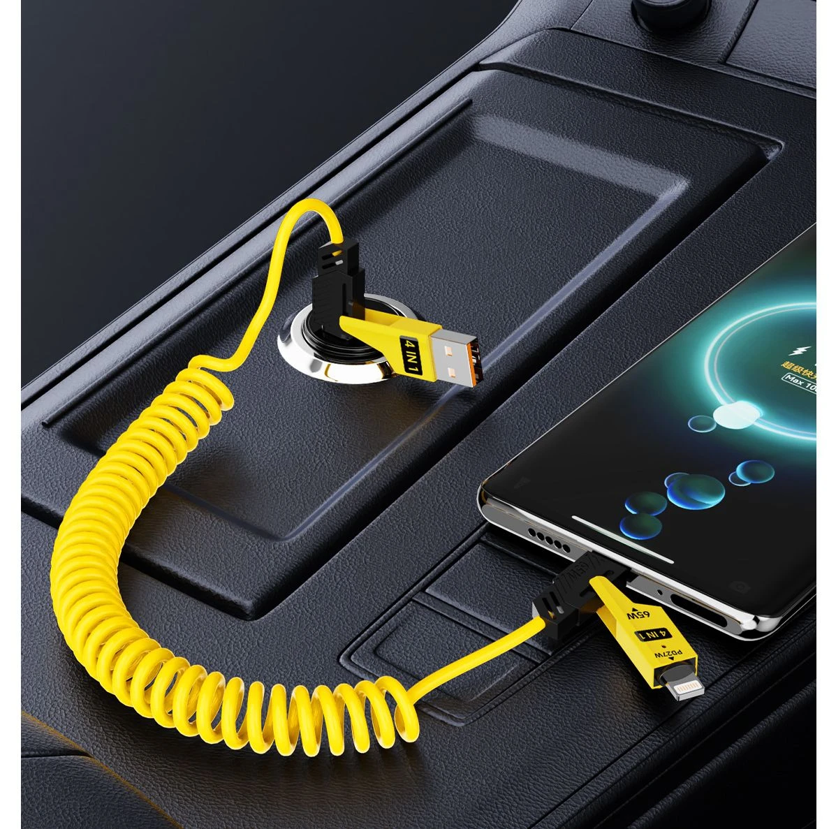 Pružinový nabíjecí kabel, datový kabel 4 v 1
