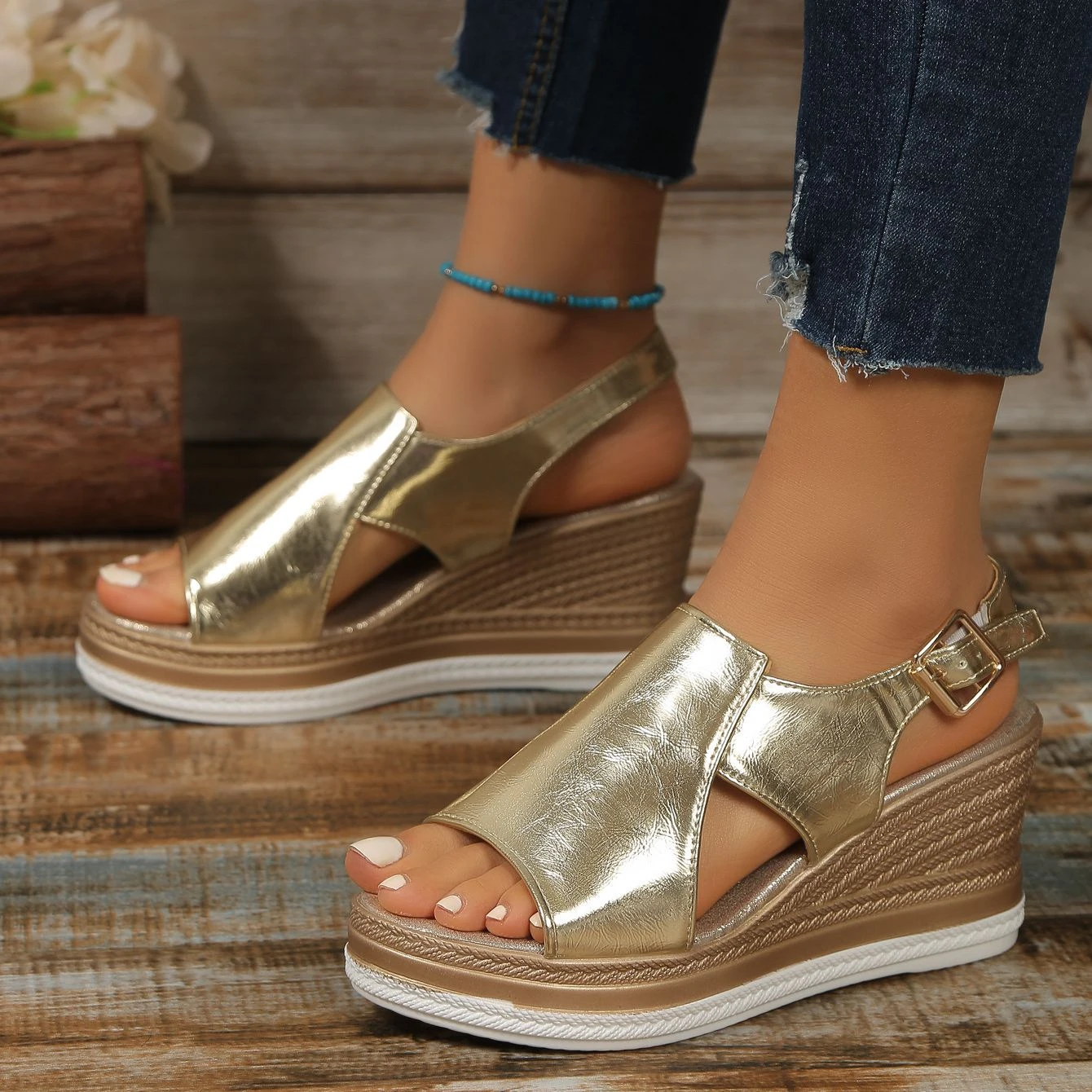 Dámské pohodlné sandály na klínku (Druhý kus se slevou 30 %)