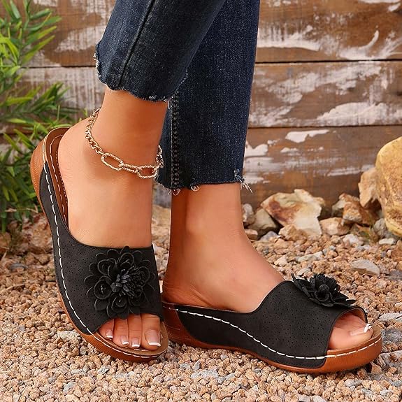 Mqqhot Dámské sandály Flower Decor Arch Support