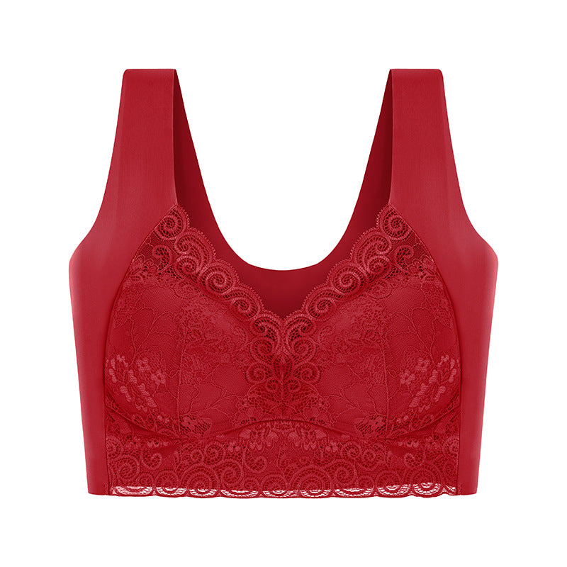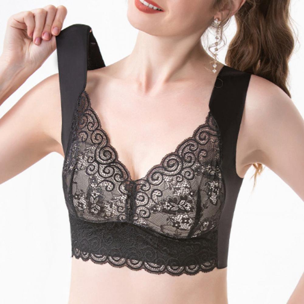 ❤️Mqqhot Dámská bezdrátová podprsenka s širokými ramínky, plná podpora, proti prohýbání, krajková