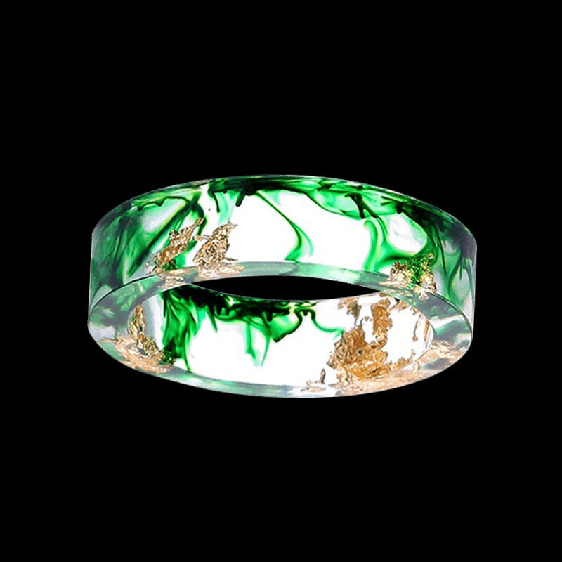 Sušené květiny a zlatá fólie dělají tento prsten tak jemný a jedinečný. miluji ho!