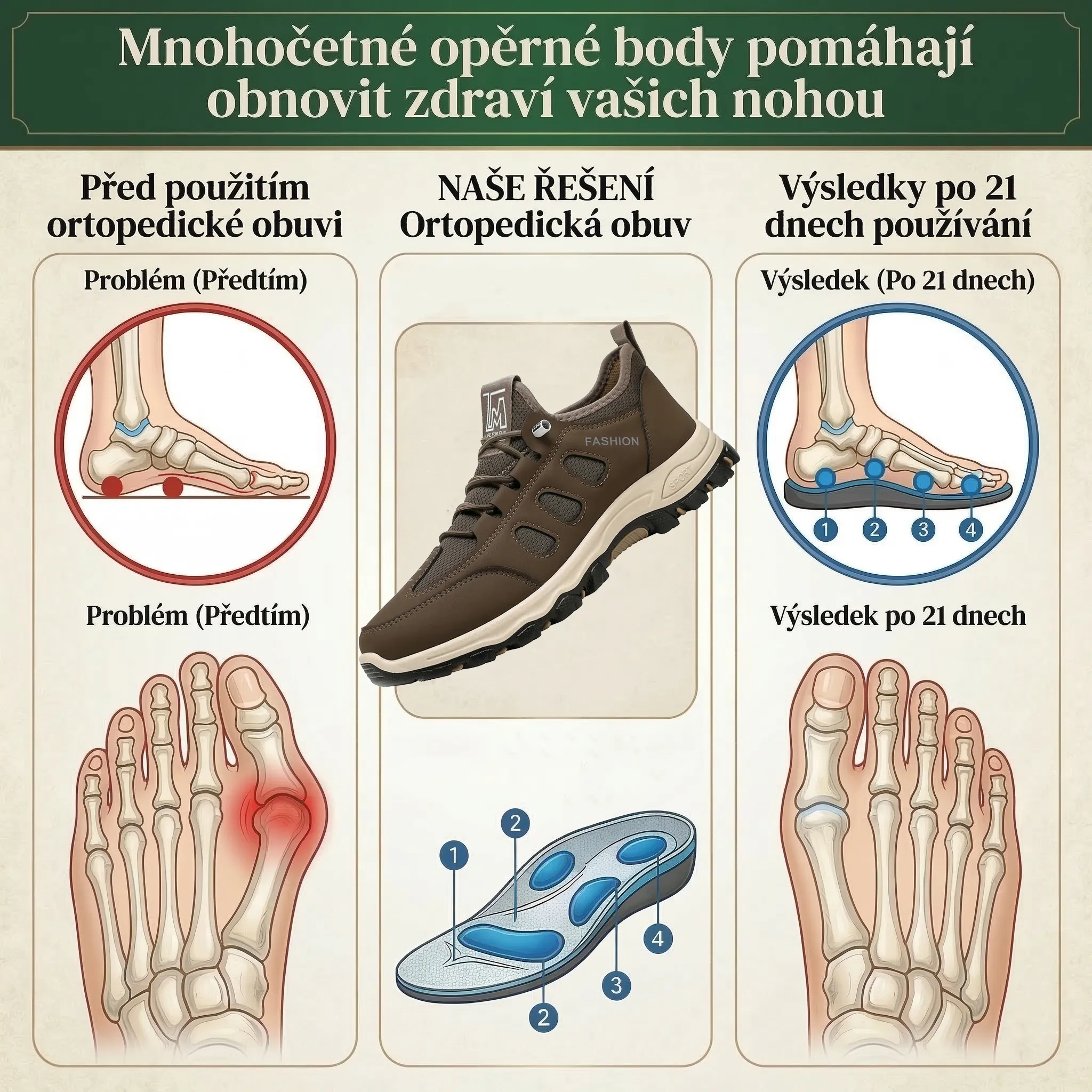 Konečně jsem našla boty, ve kterých chodím celý den bez jakékoli bolesti. Podpora klenby je fantastická. Objednám i druhý pár!