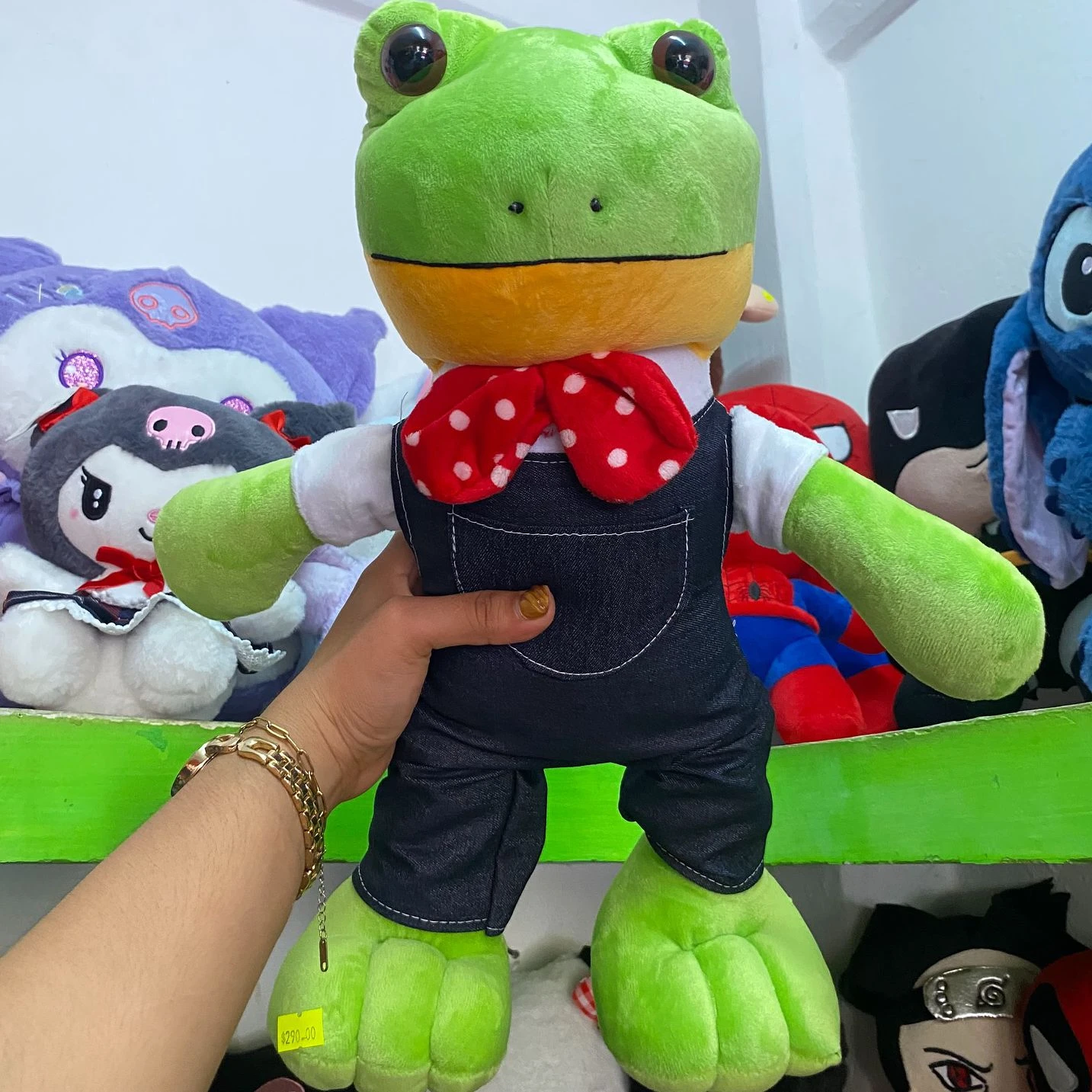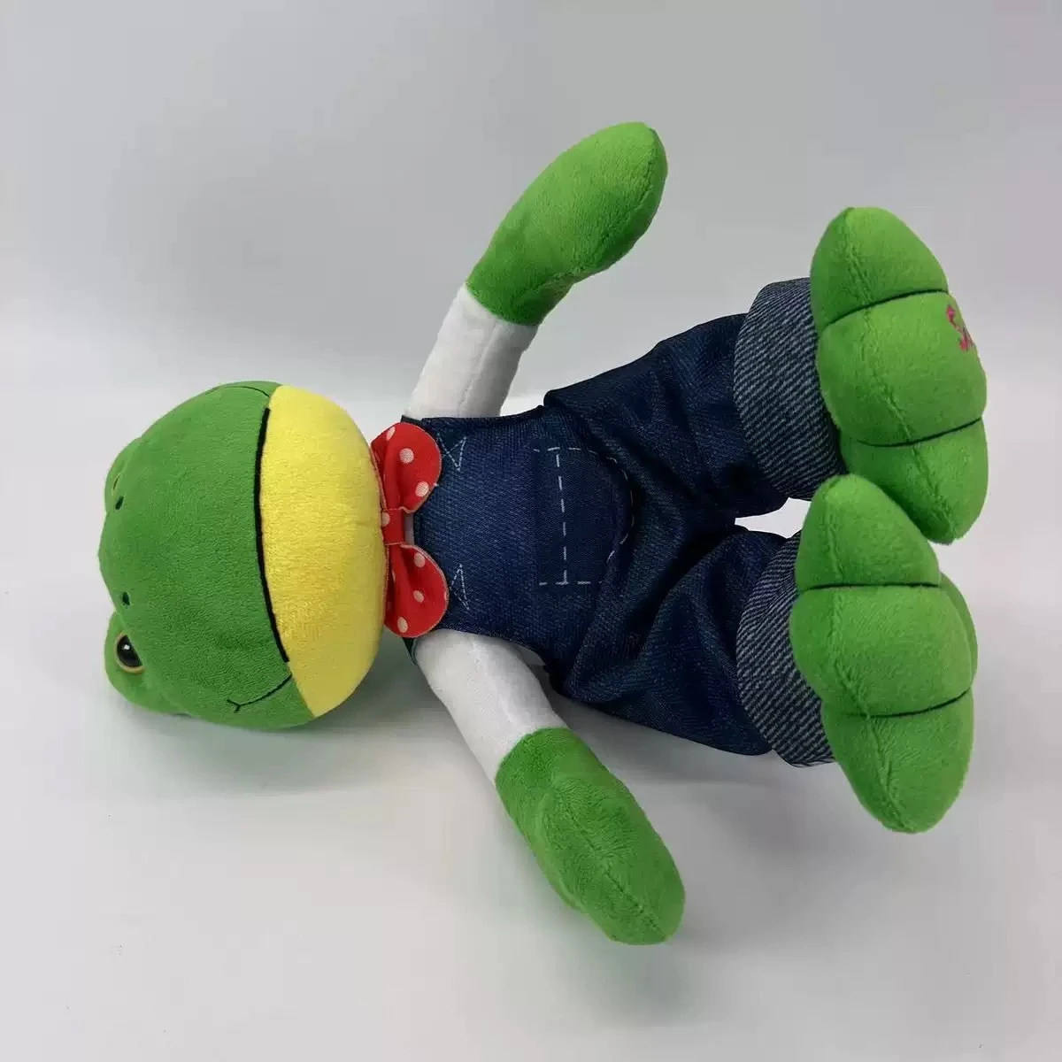 Roztomilá žába v montérkách, dětská hračka, vřelá společnost