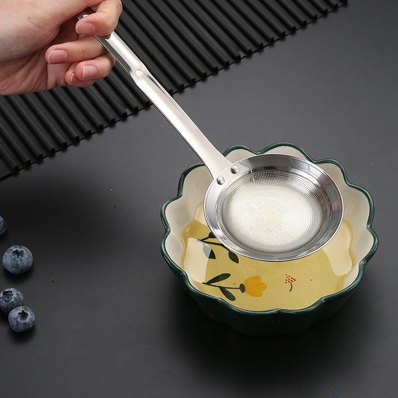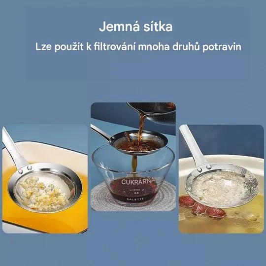 Nerezová děrovaná naběračka s jemným sítem