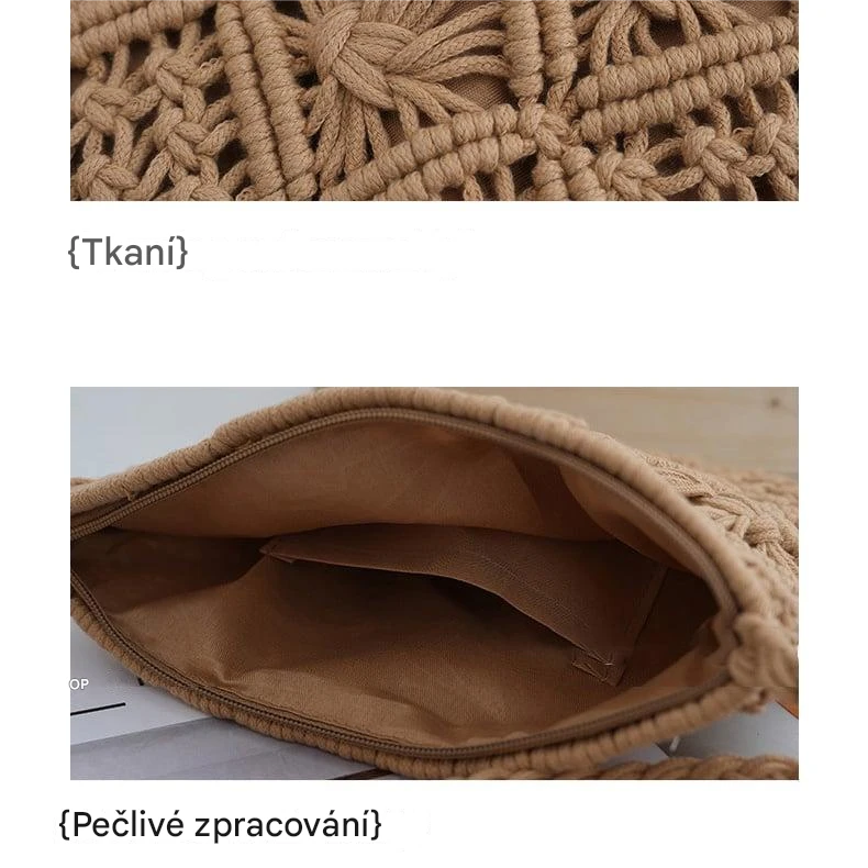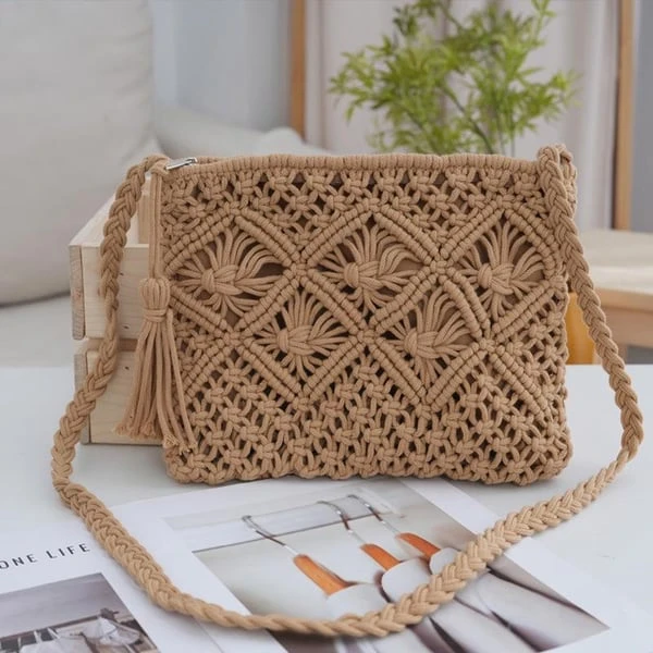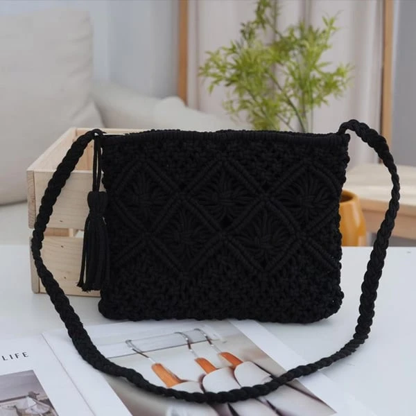Ručně háčkovaná crossbody taška — lehká, stylová s třásněmi