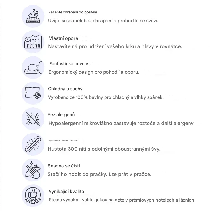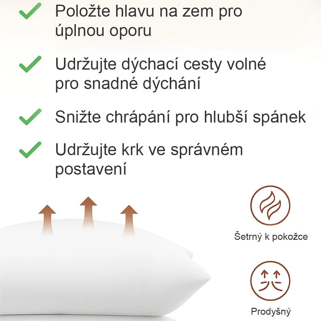Přijde mi ergonomičtější než běžné polštáře a ráno mi nezpůsobuje bolesti krku. I když chrápání úplně neodstraní, alespoň mě už nebudí.