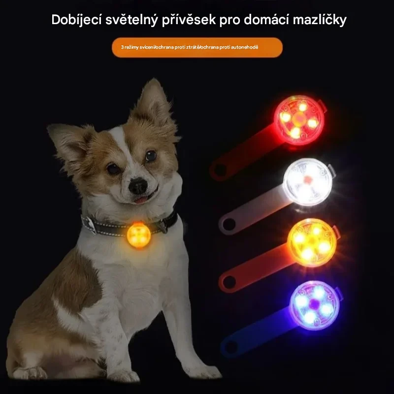 🐶✨ LED Světelný Přívěsek na Obojek – USB Dobíjecí 🌙 Více Barev 🎨 | 3ks Balení 🛍 | Noční Bezpečnost + Zábava při Venčení 🐾