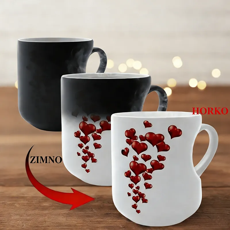 Mqqhot Hrnek Magic Love Reveal 11 oz (325 ml) Hrnek na kávu s tepelným odhalením, který mění barvu, tip na dárek