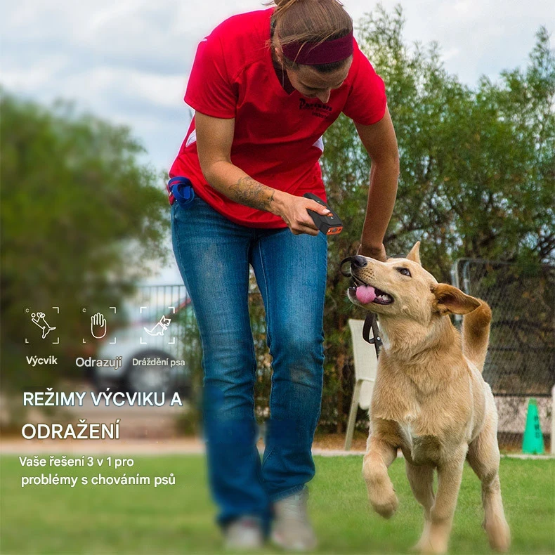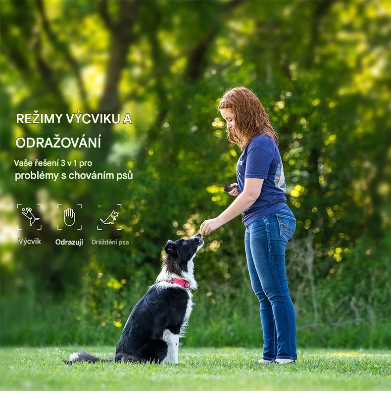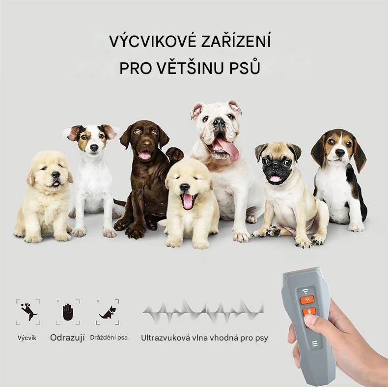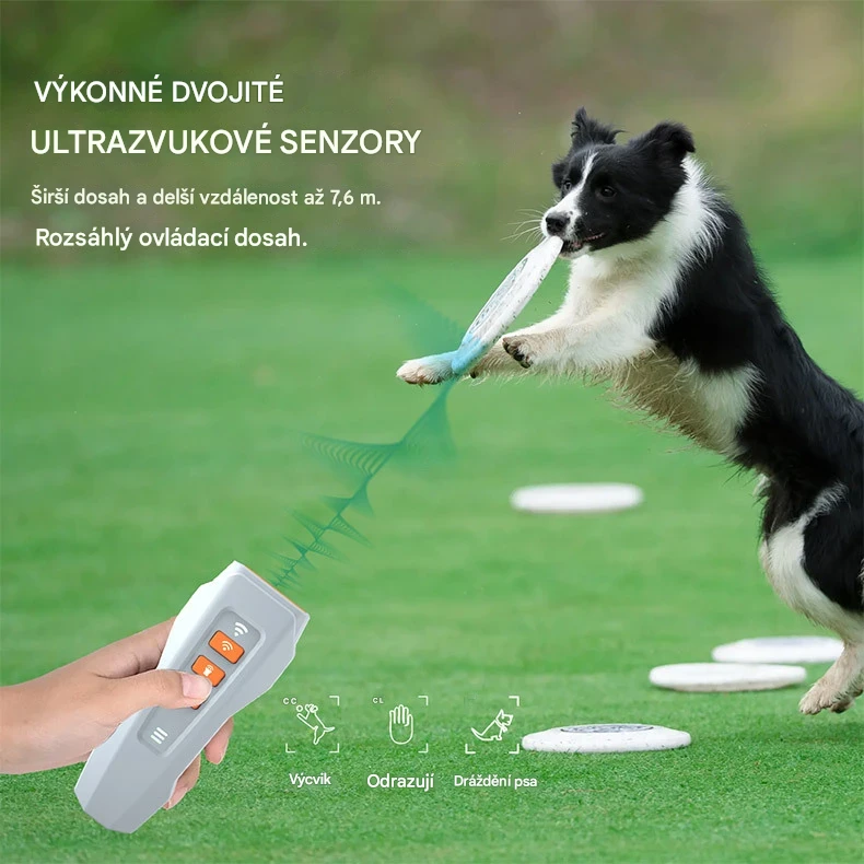 Když ho vezmeme na procházku, vždycky skáče na kolemjdoucí. Po několika použitích tohoto ultrazvukového trenažéru teď tiše sedí mezi lidmi, ale chce to trochu vytrvalosti.