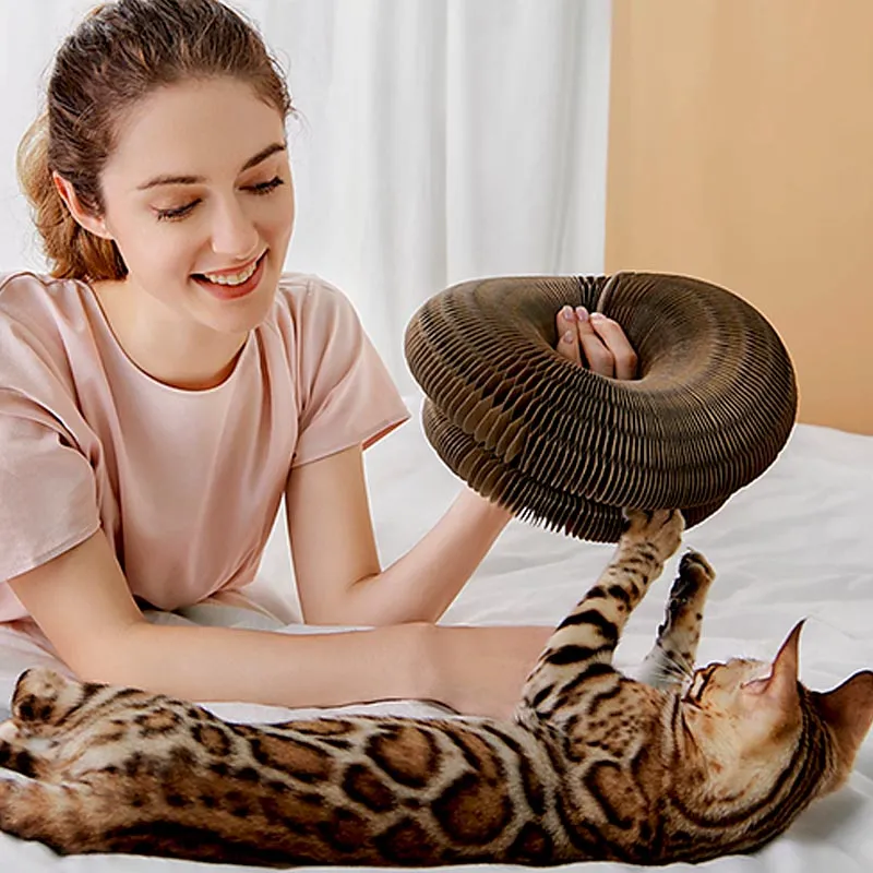 Tohle je poprvé, co vidím škrabadlo pro kočky, které se dá transformovat. Dá se dát do kruhu nebo do tvaru S. Pokaždé, když se změní na nový tvar, zdá se, že kočka objevila nový svět!