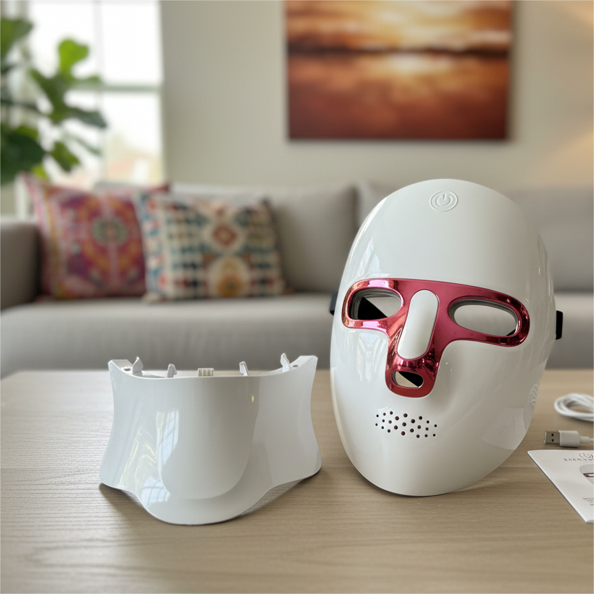 Mqqhot Červená světelná maska pro obličej a krk Komplexní fototerapie + EMS · 10–15 minut denně · Bez invaze