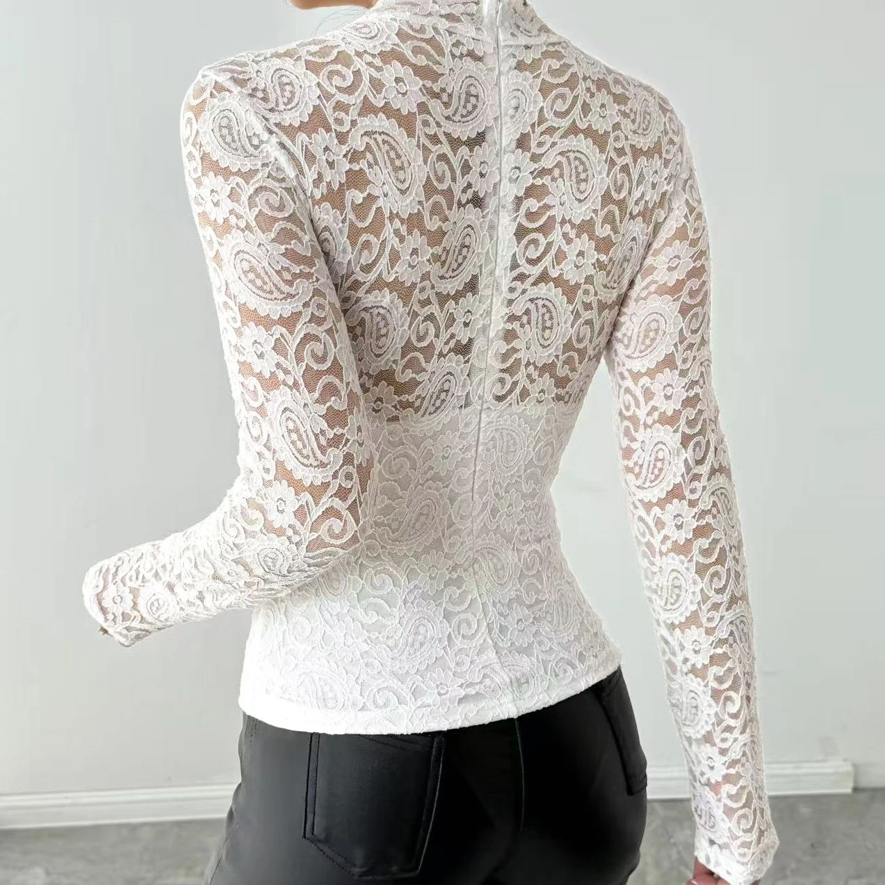 Dámský módní letní květinový vzor průsvitný krajkový top