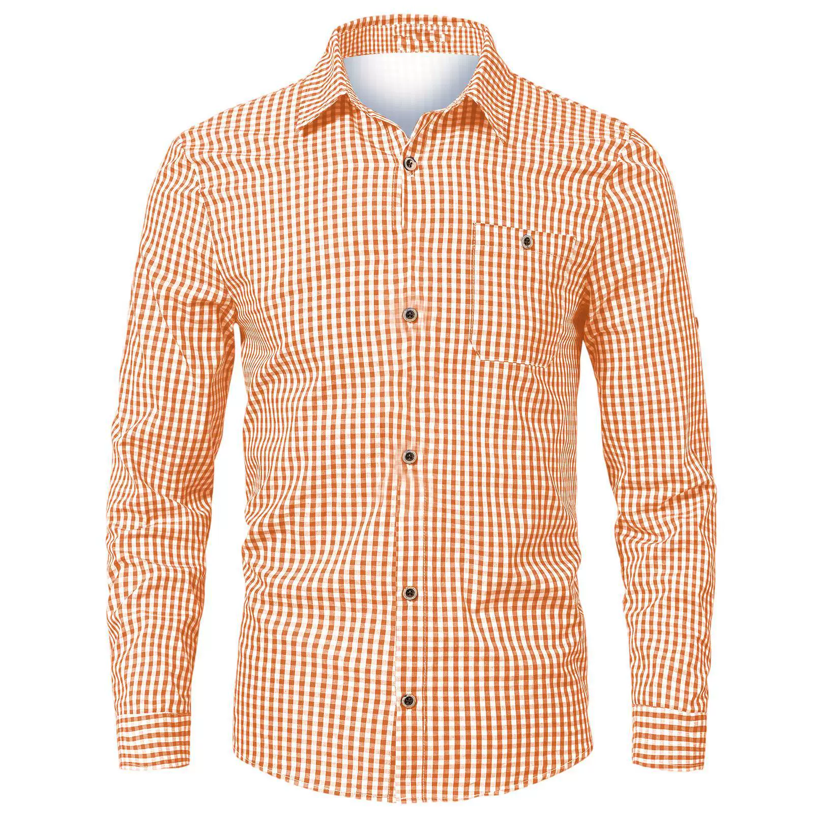 Pánská kostkovaná košile s dlouhým rukávem, úzký střih, kostkovaná košile s kapsou, bavlněná ležérní košile