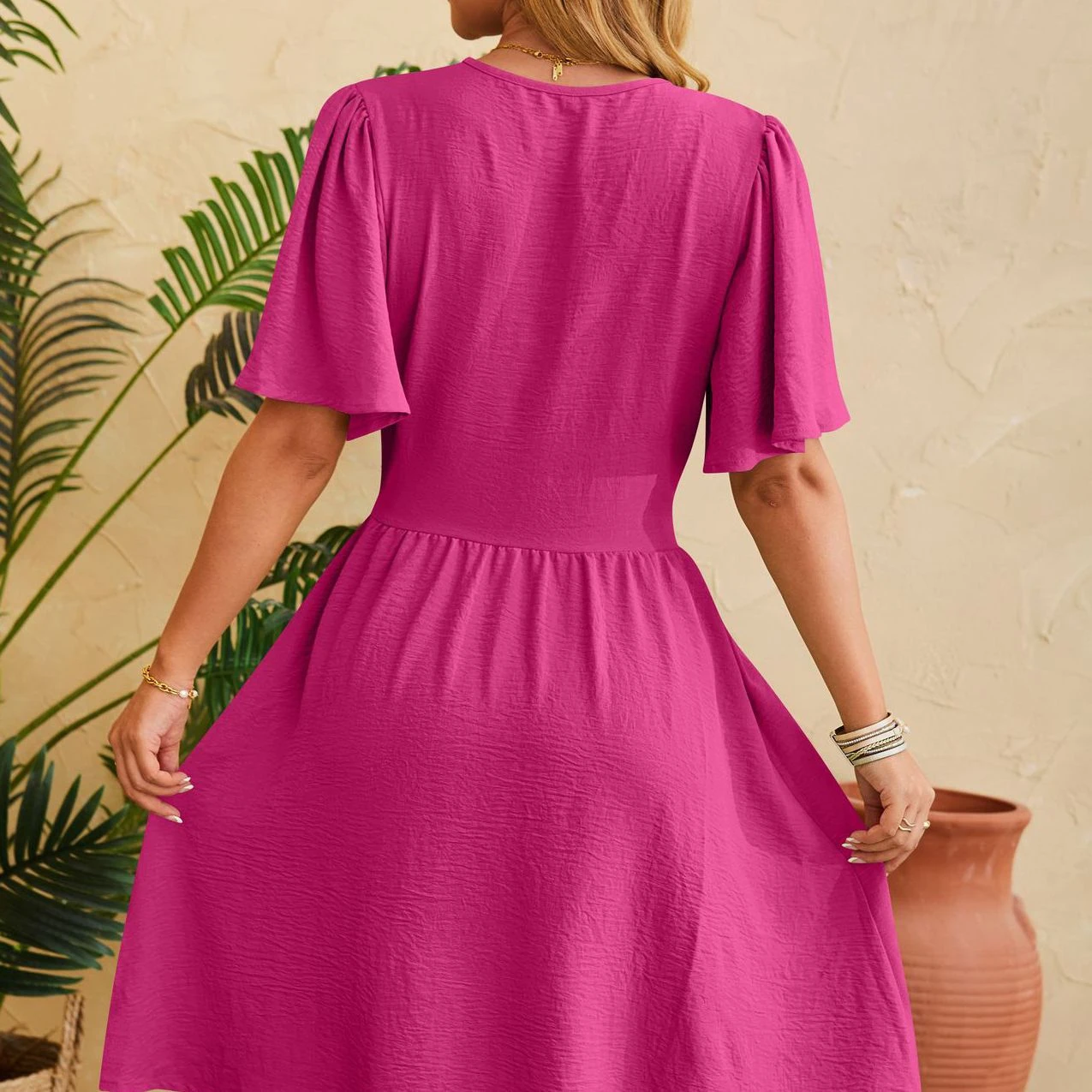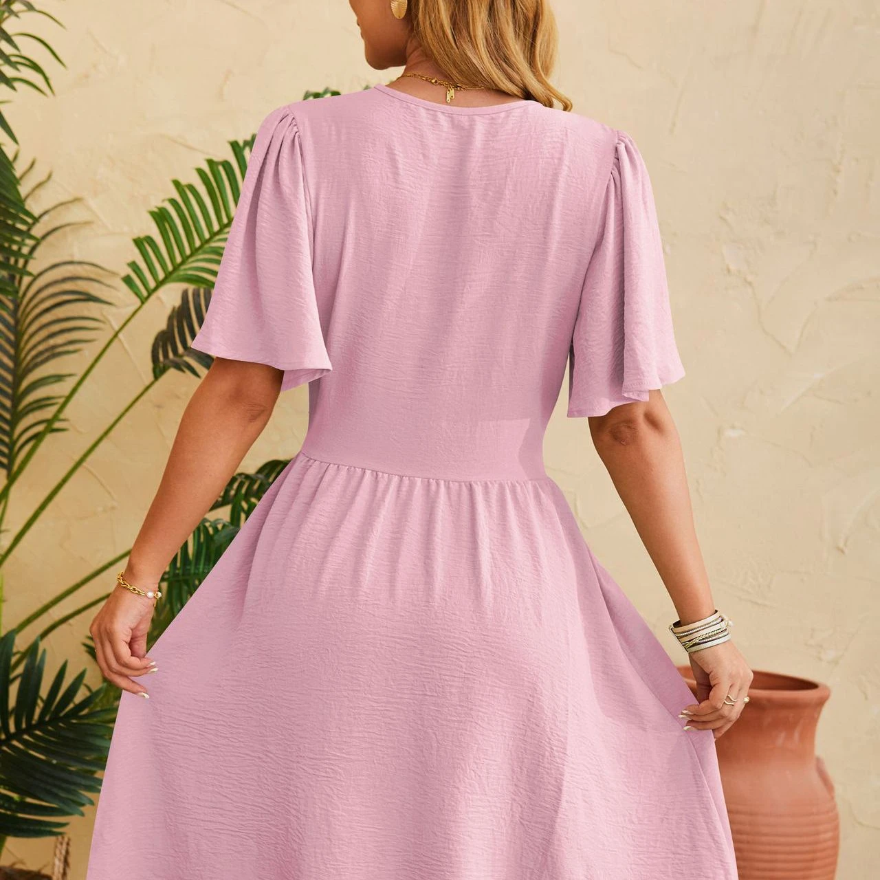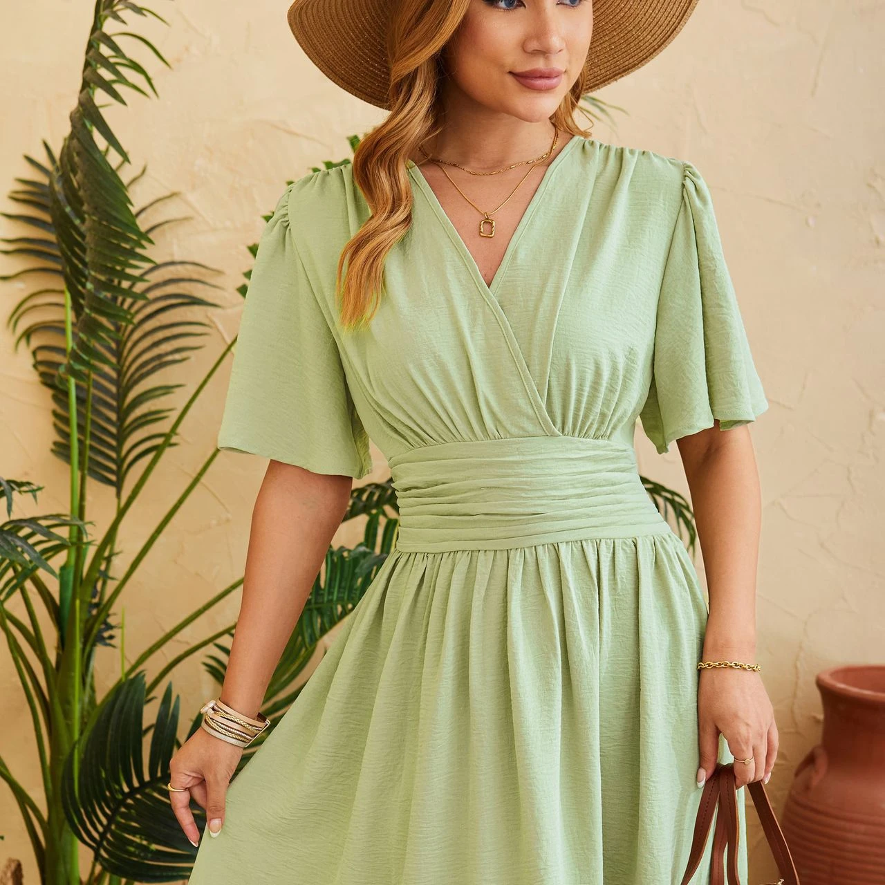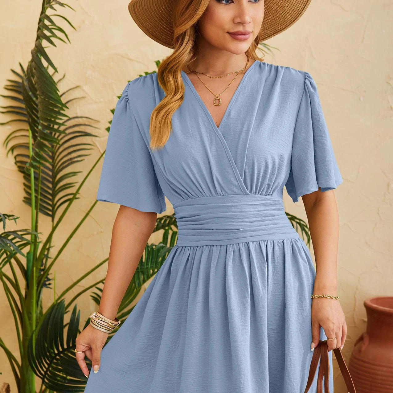 Letní nové módní šaty s výstřihem do V a rozšířenými rukávy